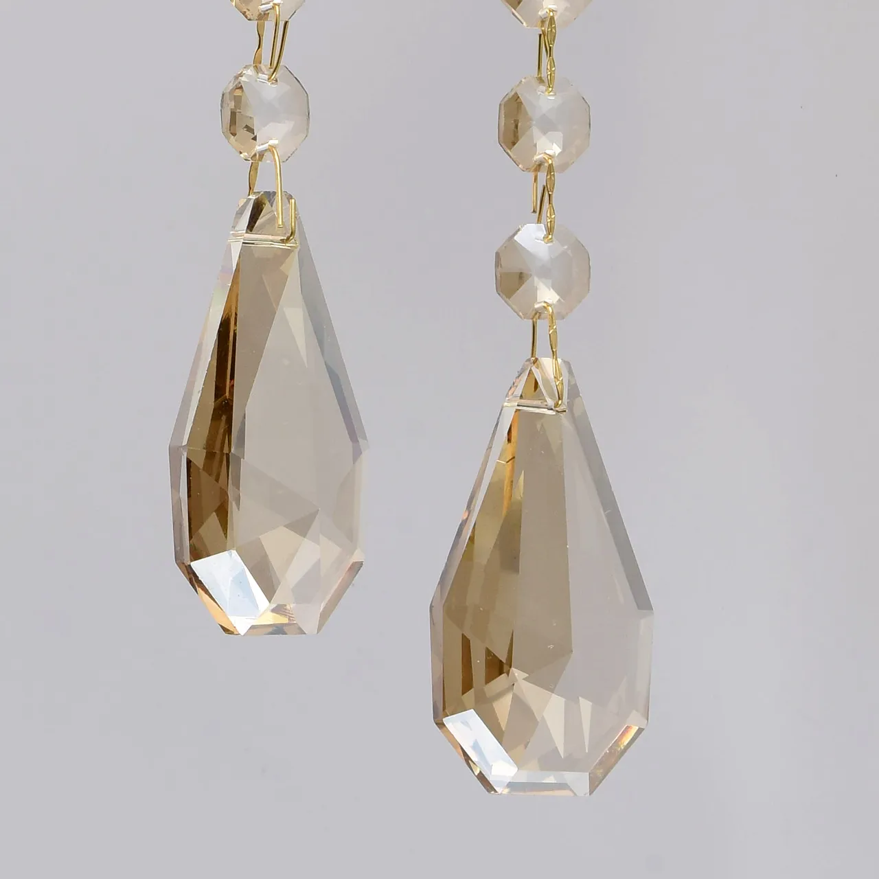 Металлическое основание цвета золота, декоративные элементы из стекла и хрустальные подвески цвета з