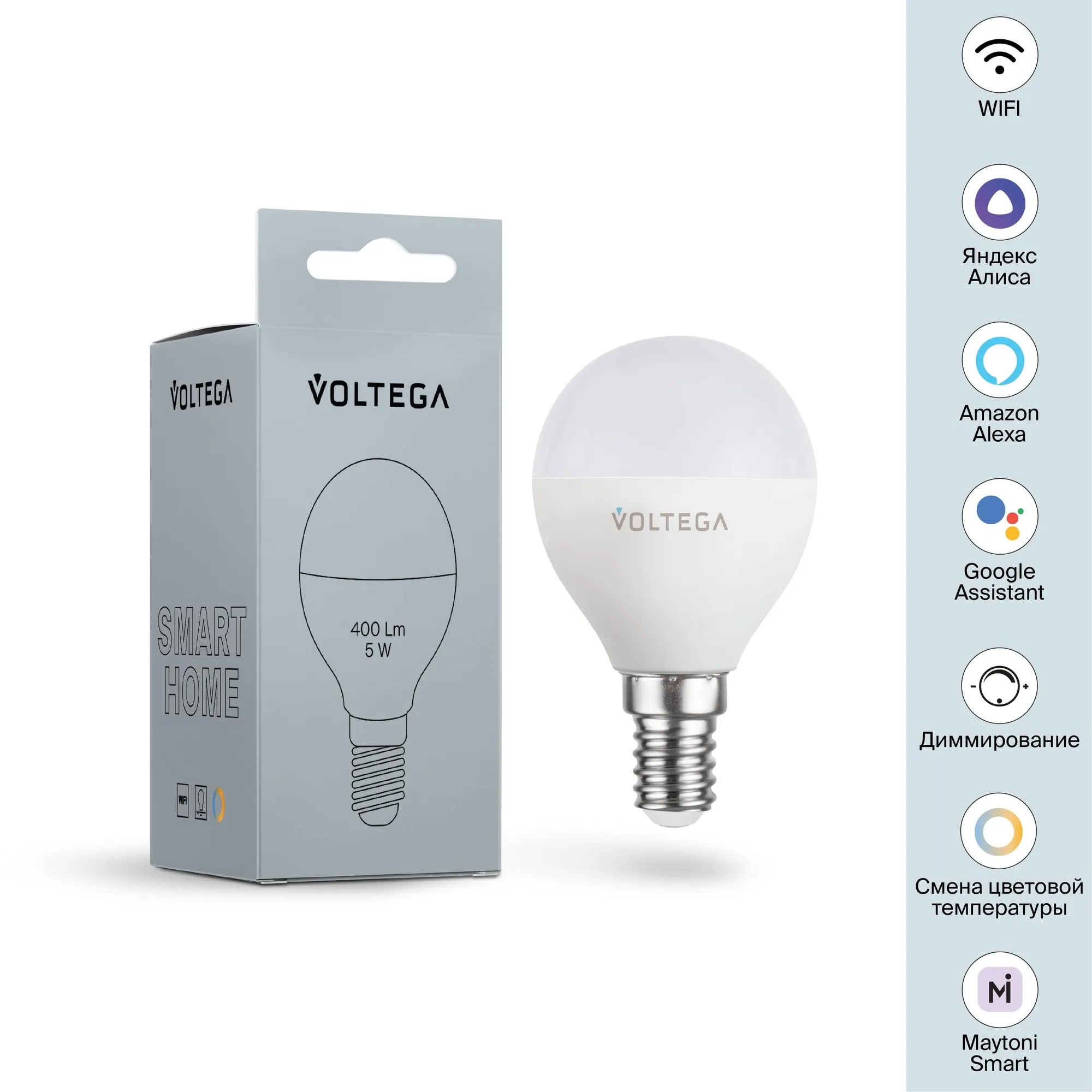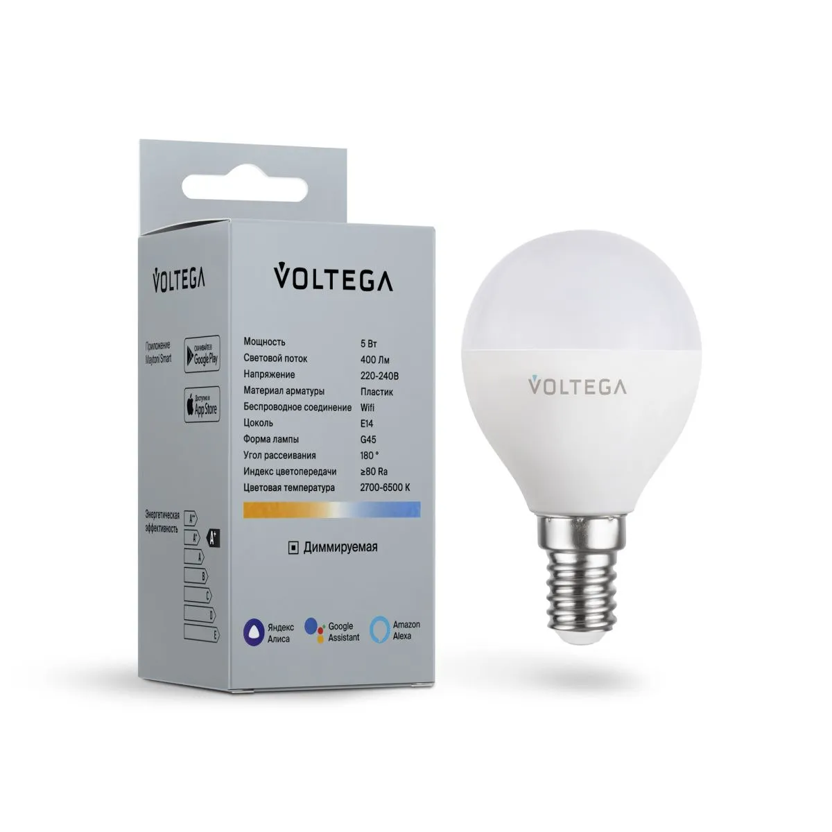 Лампа светодиодная диммируемая Voltega E14 5W 2700К матовая VG-G45E14cct-WIFI-5W 2428 купить в Брянске по лучшей цене