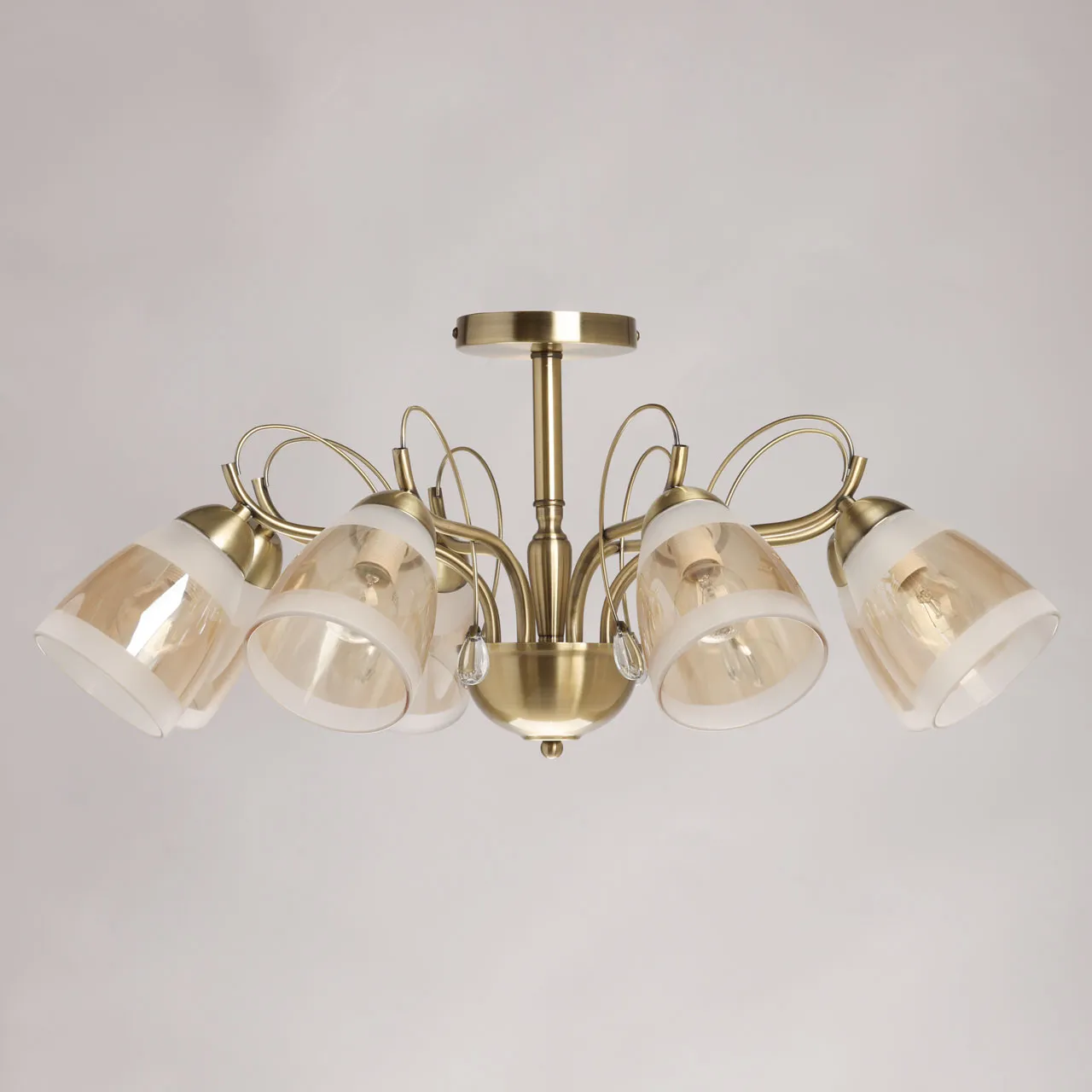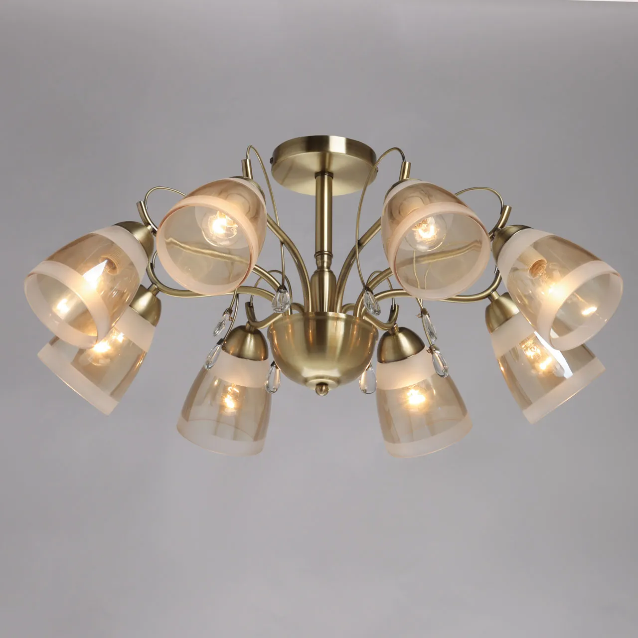 Основание/ металл/ античная бронза Плафон/ стекло/ матовое, шампань Декор/ хрустальное стекло/ про