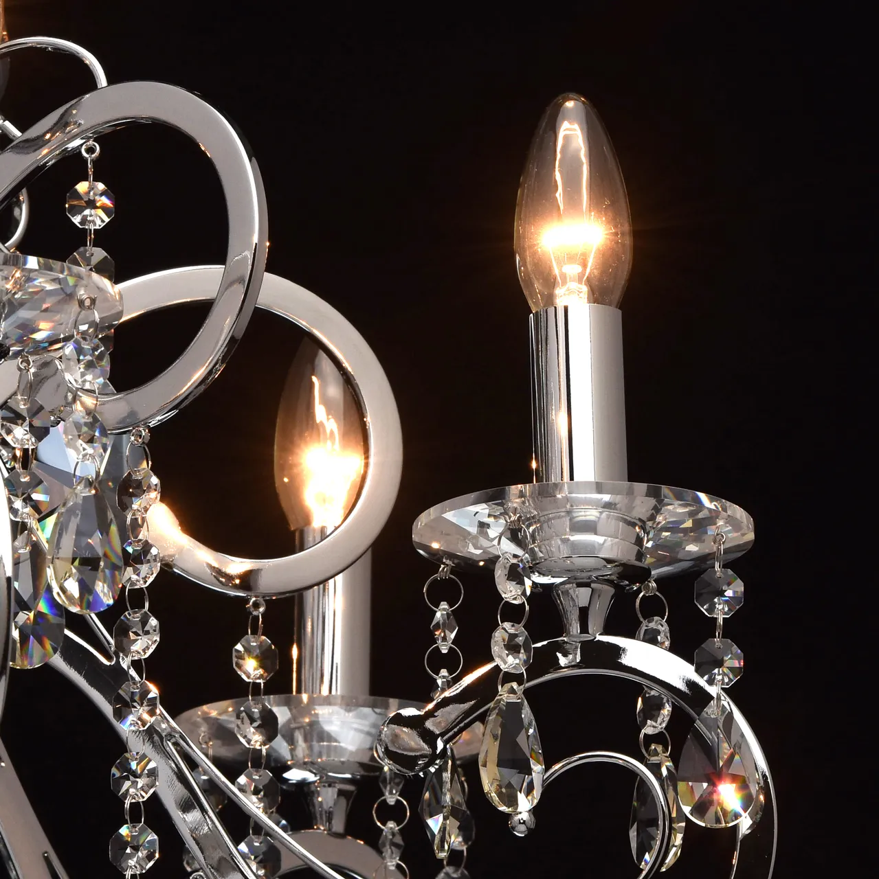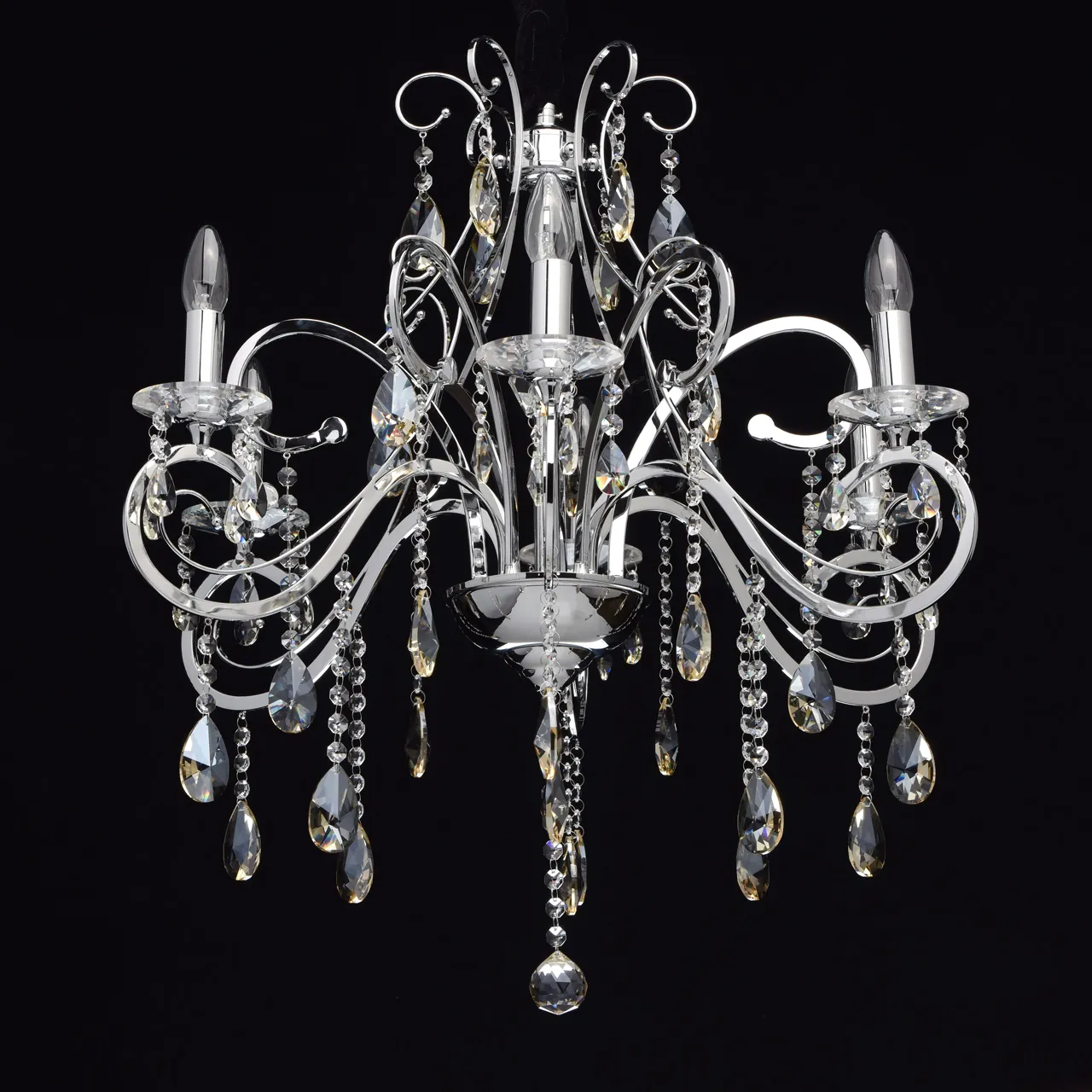 Металлическое основание цвета хрома, декоративные подвески из хрусталя