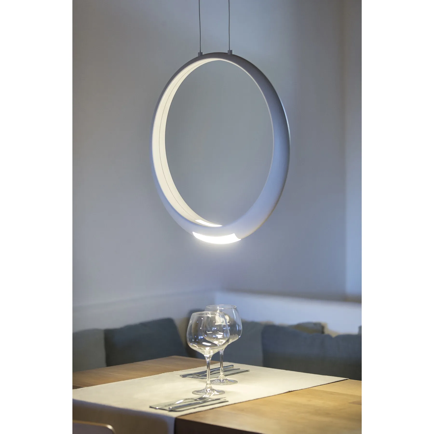 Вдохновение для дизайна было взято из философии Дзэн и веры в духовность простого и светлого. Подвесные светильники RING были созданы, чтобы стать объектом для созерцания. Это идеальный вариант для того, чтобы создать интимную обстановку, не теряя при этом элегантности и функциональности. Светильники коллекции впишутся в интерьер ресторана или кофейни, делая место более личным и запоминающимся.